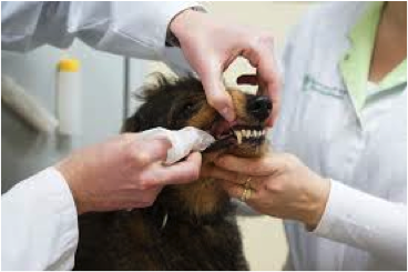 Wanneer is een gebit aangetast? Verschillende dingen kunnen hierop wijzen. In eerste instantie een hele nare stinkende geur uit de mond van uw hond. Dit is vaak al een kenmerk voor een aangetast gebit. Daarna kijken we naar het tandvlees. Wanneer dit dik en opgezwollen is en een diep rode kleur heeft is dit ook al een teken voor een aangetast gebit. Vooral ook wanneer dit tandvlees ook nog eens pijnlijk is. Als laatste kijken we uiteraard naar de tanden zelf. Zijn deze verkleurd en lijkt er een laagje op te zitten dan heeft uw hond tandsteen. Als u over dat deel heen gaat met uw vinger dan merkt u ook dat dit heel ruw is. Ook kijken we of uw hond alle tanden nog heeft en of hij er niet te veel heeft uiteraard.